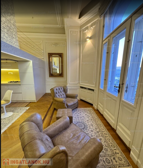 RITKASÁG! FULL DUNAI PANORÁMÁS KÜLÖNLEGES, LUXUS LAKÁS teljes berendezéssel, galériával( háló+dolgozó), 2 fürdővel, klímával, elektromos redőnyökkel, excluzív gépesített konyhával, Dunára , Erzsébet hídra és a Budai hegyekre full panorámás, erkélyes, církó fűtéses lakás, elképesztően gyönyörű szecessziós épületben. Az ingatlan kiválóan alkalmas ritkasága és értékállósága, továbbá adottságai miatt befektetésnek, akár lakásnak, akár egy reprezentatív irodának.Váci utca, M3 metro Duna Corso 2 perc séta távolságnyira.